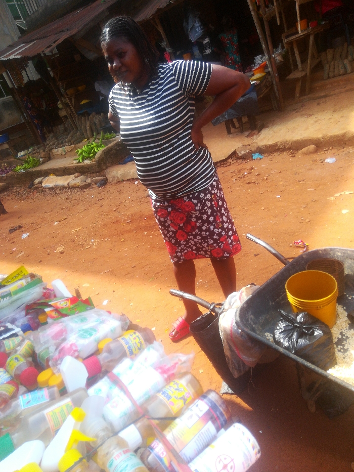 The image portrays an outdoor market scene in Alor, Nigeria, under daylight conditions