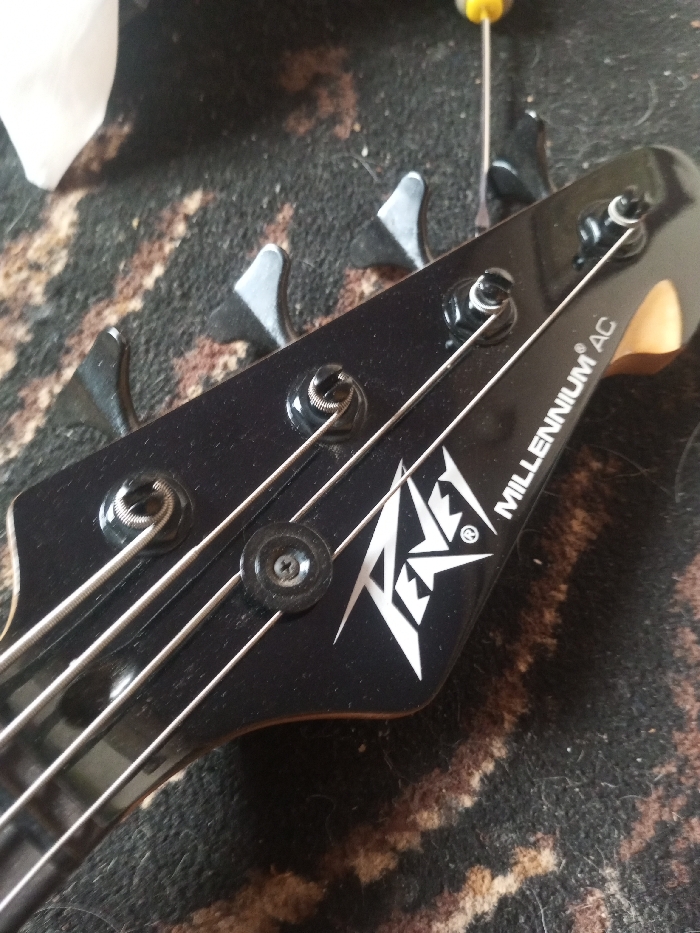 - "A black Peavey Millennium AC bass guitar headstock with four tuning pegs is displayed" by FM-2qiQn2, licensed under CC BY 4.0