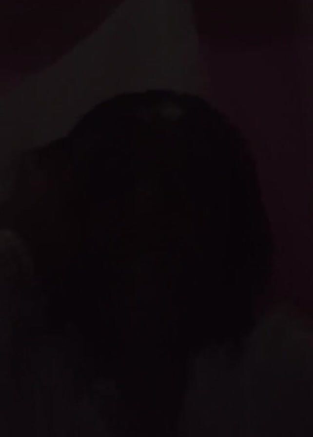 In a dimly lit, indoor scene, a person with dark hair is lying down, possibly in bed. A white pillow is visible to the left and a dark surface to the right. Very little detail is discernible due to the poor lighting.