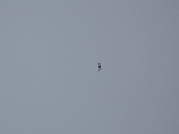 - "A dark-colored quadcopter drone is observed in flight against a uniform light grey, overcast sky" by FM-rp3GD2, licensed under CC BY 4.0