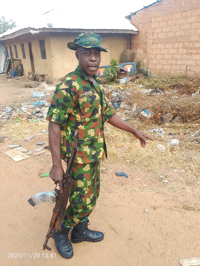 An adult male stands outdoors in Ejule, Nigeria, on November 20, 2025, at 13:41
