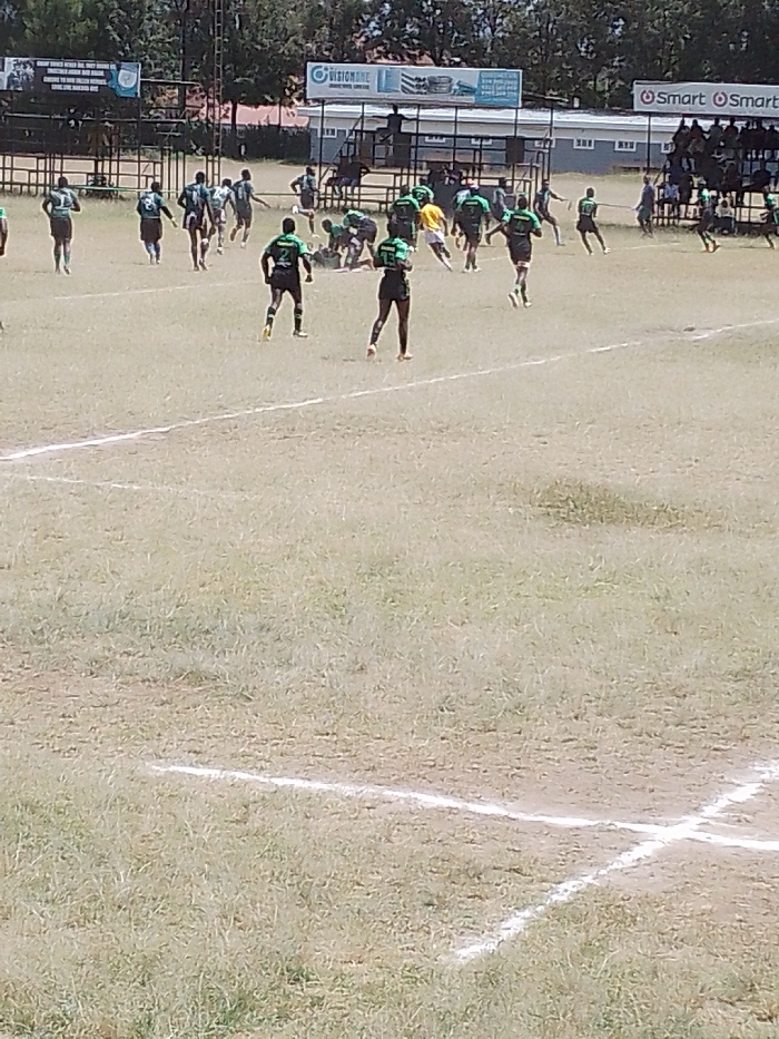 The image depicts an outdoor sporting event, specifically a rugby match, in progress at the Nakuru Athletics Club in Nakuru, Kenya