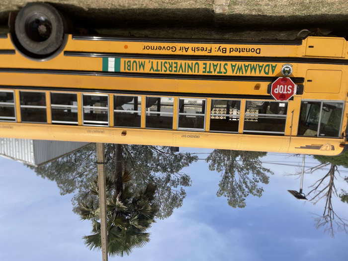 - "The scene depicts a large yellow school bus parked outdoors in Naraguta Hausawa, Nigeria, under a clear sky with scattered clouds" by FM-G052v2, licensed under CC BY 4.0