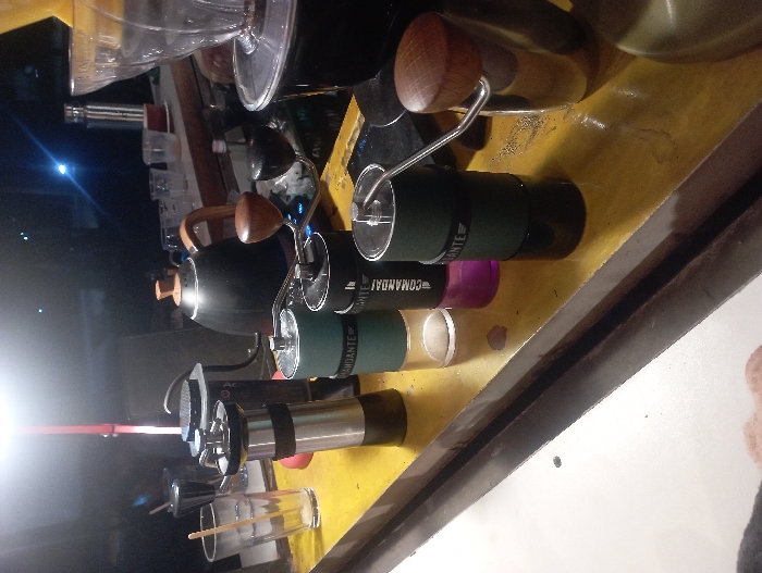 - "countertop with coffee grinders, a kettle, and other coffee-related equipment" by FM-3hh522, licensed under CC BY 4.0