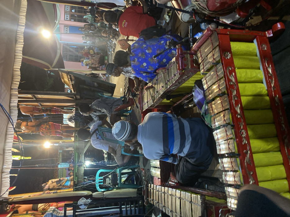 An outdoor cultural performance is captured at night in Kecamatan Pati, Indonesia