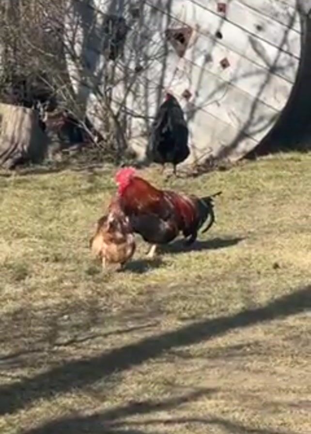 - "rooster attempting to mate with a hen in a grassy area" by FM-qTHAd2, licensed under CC BY 4.0