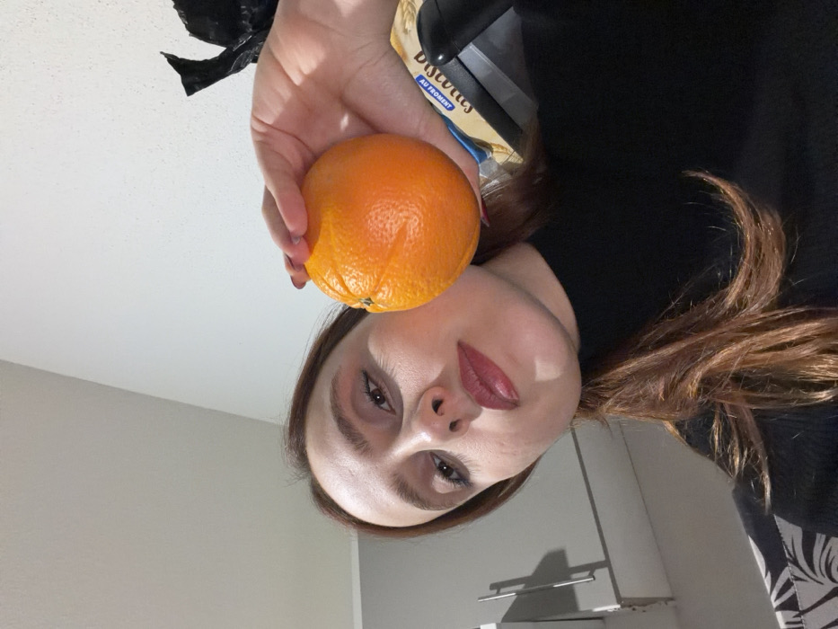 - "A woman holds an orange in her left hand" by FM-iVf172, licensed under CC BY 4.0