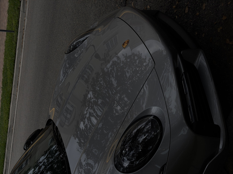 - "The image displays a close-up, angled view of the front section of a grey Porsche sports car, parked on an asphalt surface" by FM-wRp1W2, licensed under CC BY 4.0