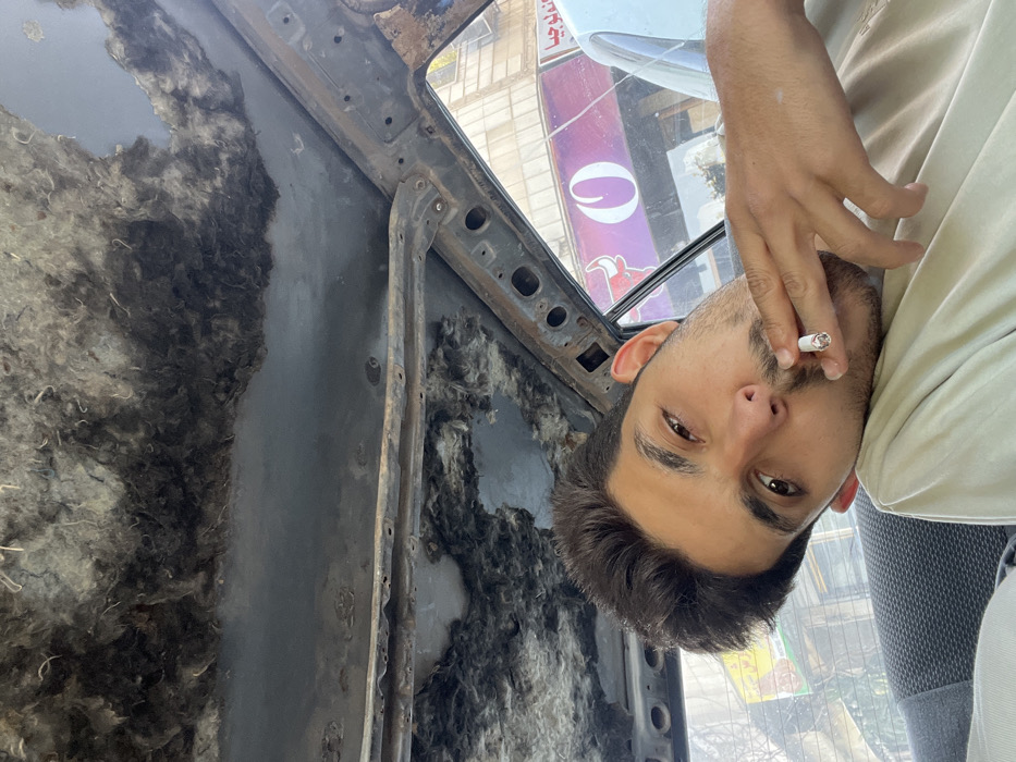 A young adult male is seated inside a vehicle in Sarouja Municipality, Syria