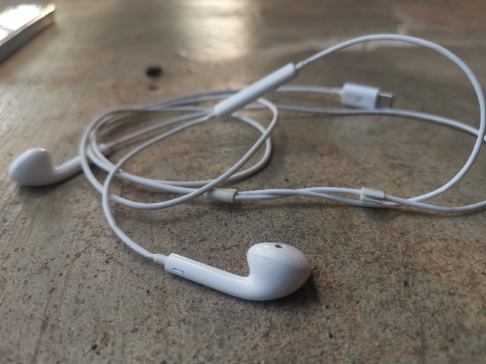 - "A pair of white wired earphones lies on a coarse, light brown-grey concrete surface in the city of Otolokpo, Nigeria" by FM-t8Vzk1, licensed under CC BY 4.0