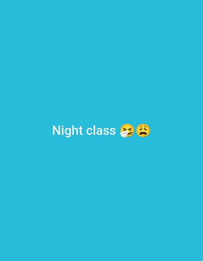The image has a light blue background. In the center, the text "Night class" is written in white. To the right of the text, there are two emojis. The first emoji depicts a face with a tissue coming out of its nose, indicating a sneeze or cold. The second emoji shows a face with a sad or worried expression.