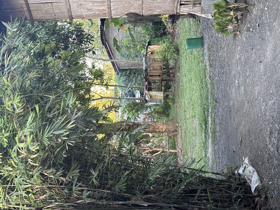 The scene depicts a semi-rural backyard in Carmen, Philippines, under conditions consistent with late afternoon or early morning sunlight
