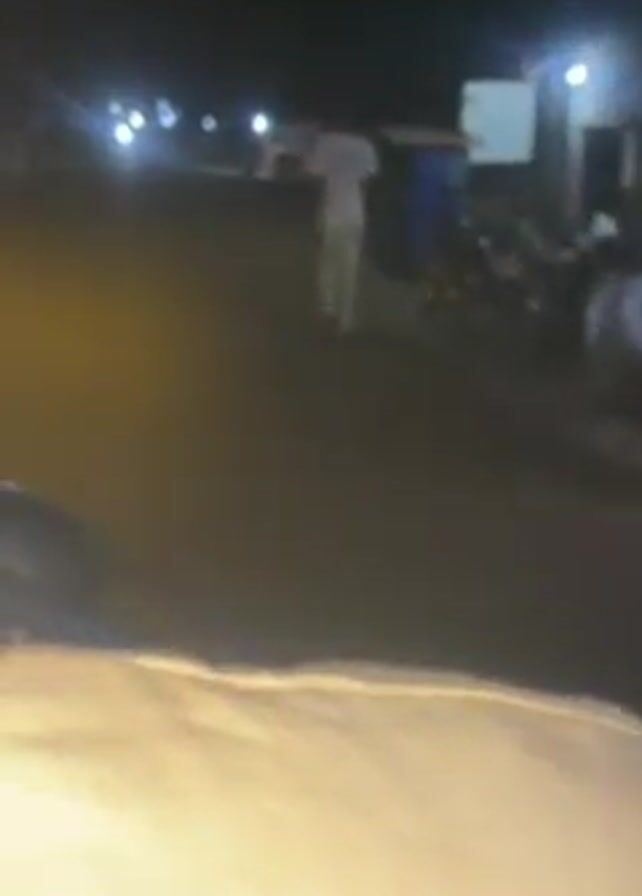 The video is taken at night, likely from the perspective of someone riding in a vehicle