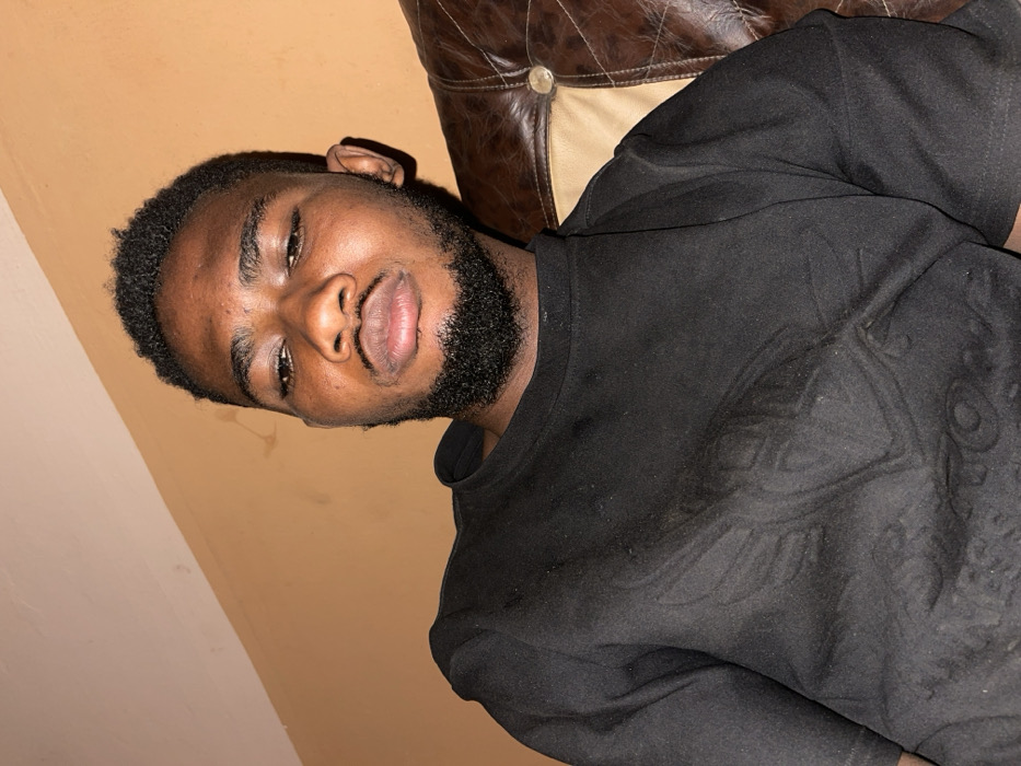 The image displays a male individual, appearing to be of African descent, situated in an indoor environment in Muchiya, Nigeria