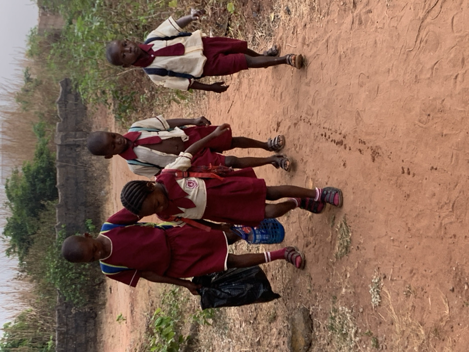 - "Four children in school uniforms walk on a dirt path" by FM-axXTn1, licensed under CC BY 4.0