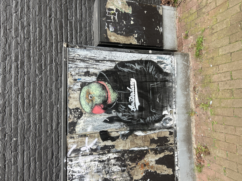 - "An outdoor street scene in Amsterdam, Netherlands, displays a large utility cabinet covered with street art" by FM-2rkLO2, licensed under CC BY 4.0