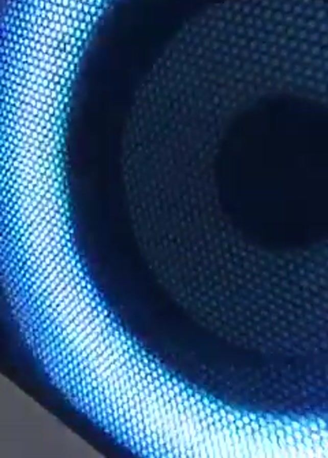 - "A close-up, low-angle shot focuses on a black speaker with pink and white LED lights that encircle the speaker's center" by FM-aEPmy2, licensed under CC BY 4.0