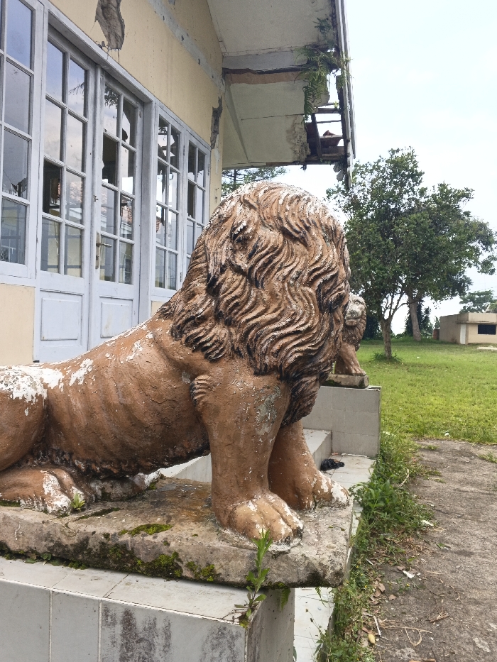 - "The scene, located in Lokossa, Benin, features a weathered lion statue positioned on a stone plinth in the foreground" by FM-3HXKD2, licensed under CC BY 4.0