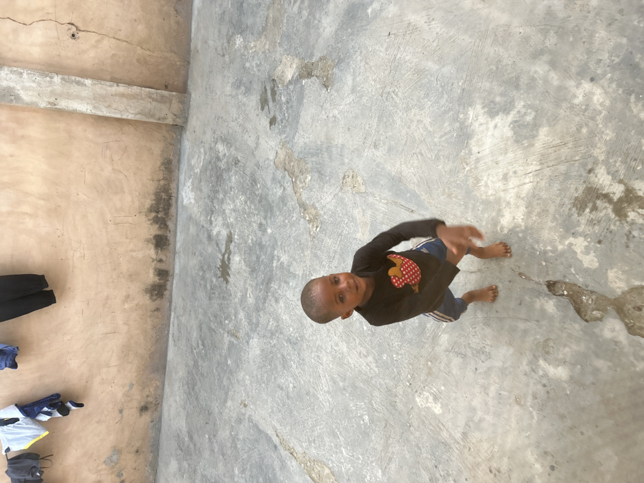 - "A young, dark-skinned child with a very short haircut stands barefoot and slightly crouched on a weathered grey concrete surface in an outdoor courtyard in Lagos, Nigeria" by FM-6s1pj1, licensed under CC BY 4.0