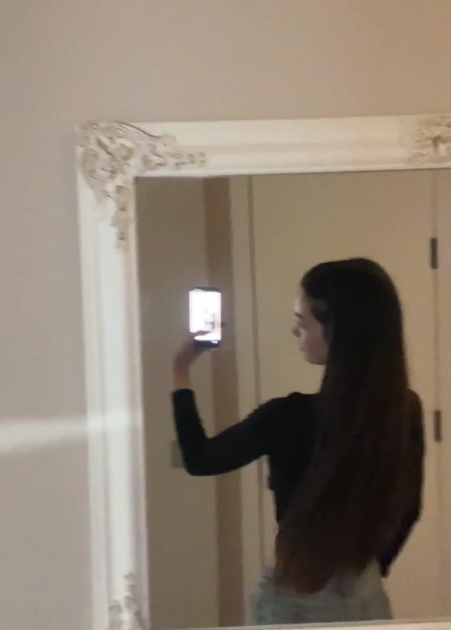 - "A woman with long dark hair stands in front of a white ornate-framed mirror and takes a picture of herself with her phone" by FM-iXWVF2, licensed under CC BY 4.0
