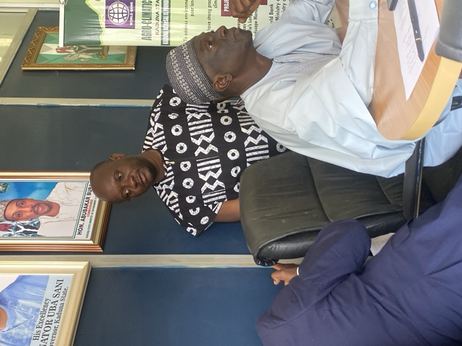The scene is an indoor setting, likely a conference room or office, located in Unguwar Rimi, Nigeria