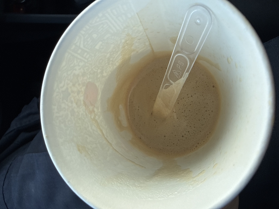 - "The image, taken in Devnya, Bulgaria, shows the interior of a disposable white paper cup containing a small quantity of light brown, frothy liquid, consistent with residual coffee" by FM-3H8A52, licensed under CC BY 4.0