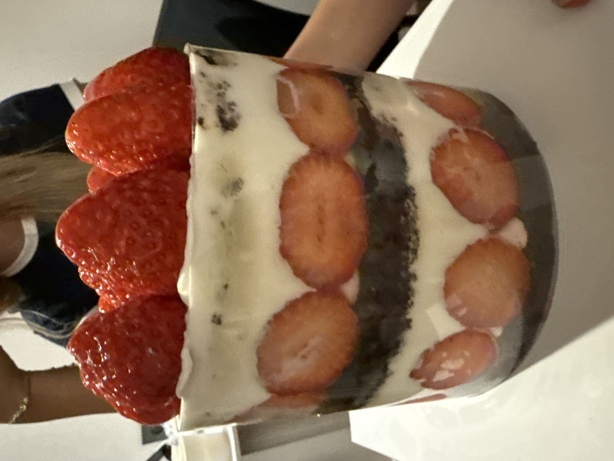 - "A container filled with strawberries, cream, and a dark layer, possibly cake, is shown close up" by FM-LQAZF2, licensed under CC BY 4.0