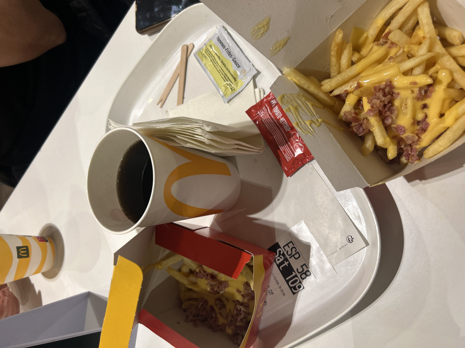 The image depicts a white table surface in a McDonald's restaurant located in Souffelweyersheim, France
