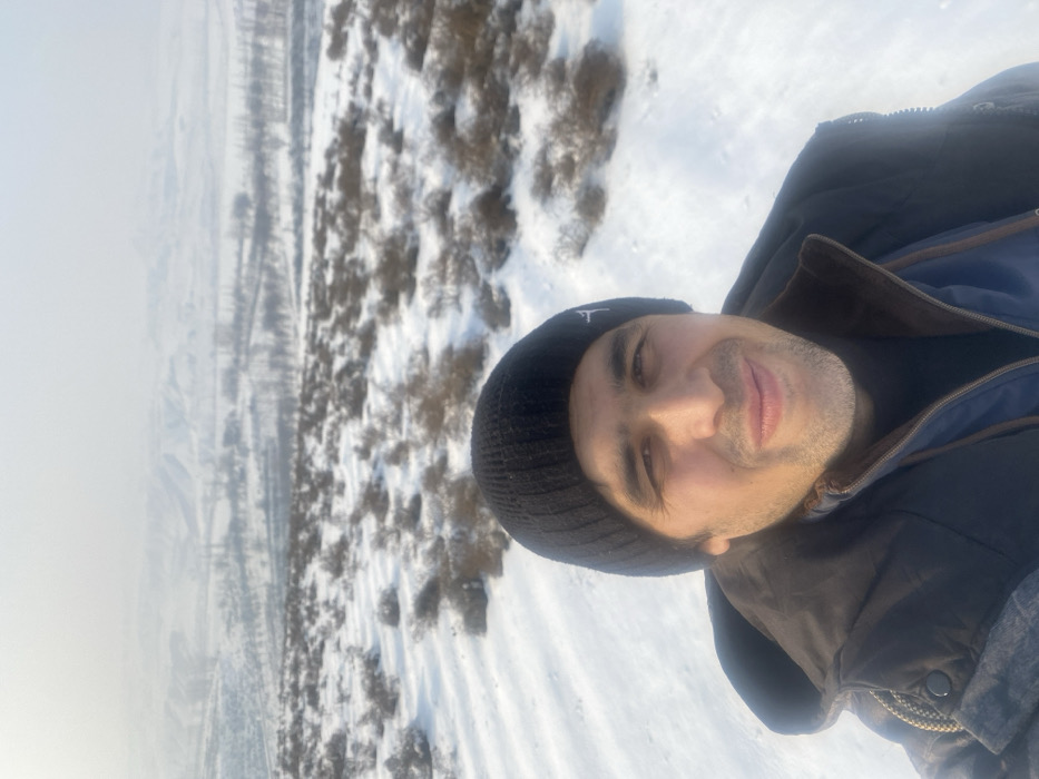- "A single adult male is depicted in a close-up, selfie-style portrait against a snow-covered, rural landscape located near Marhamat, Uzbekistan" by FM-fKVxi2, licensed under CC BY 4.0