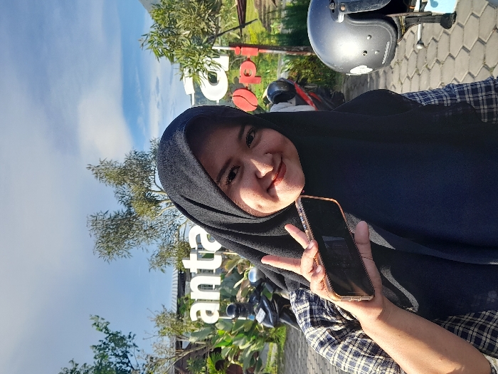 - "A female subject is depicted in Penanggungan, Indonesia, standing outdoors at a location identified by large white and red signage reading "Santai Kopi"" by FM-8CAHW2, licensed under CC BY 4.0