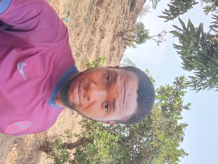 A male individual, estimated to be in his 20s or 30s, is depicted in a selfie-style portrait in Kugbo, Nigeria