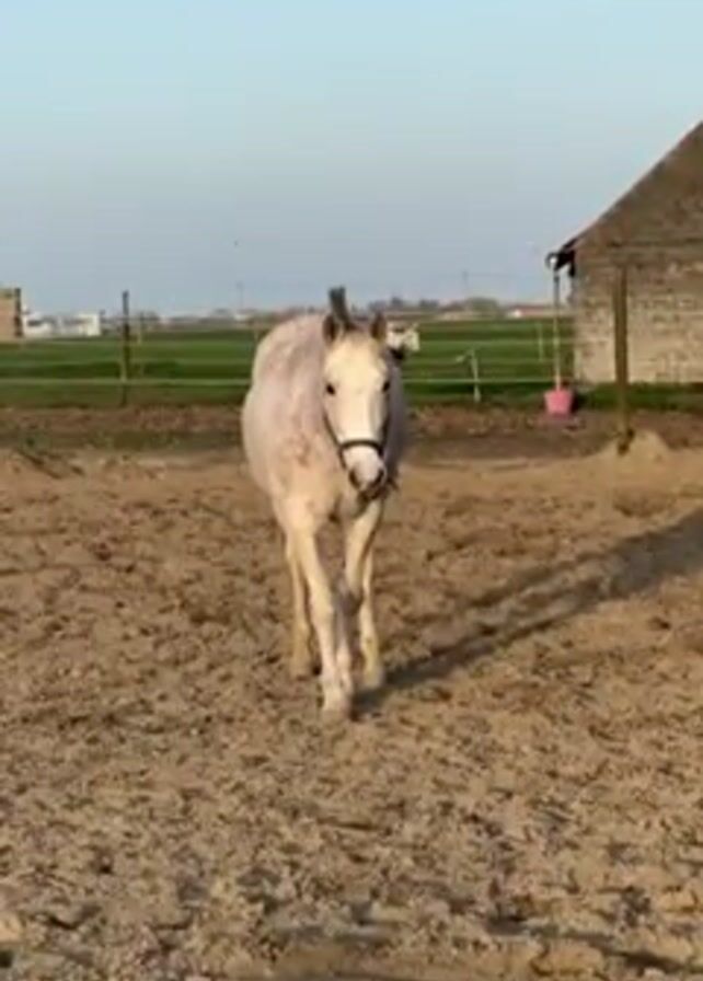 - "dappled grey horse wearing a halter walking towards the camera in a dirt paddock" by FM-xTDQG2, licensed under CC BY 4.0