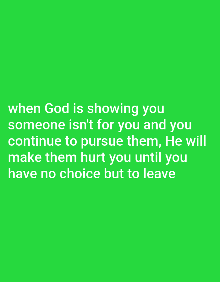 The image displays a green background with text overlaid. The text delivers a religious-themed message. It states that if God reveals someone is not suitable for you, and you still pursue them, God will allow that person to cause you pain until you feel compelled to leave the relationship. The message suggests divine intervention in relationships.
