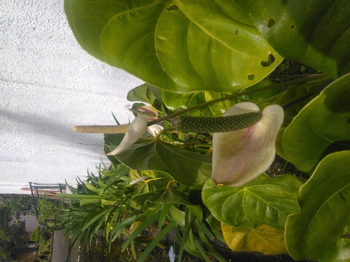 - "The image displays a close-up, ground-level view of an Anthurium plant situated in an outdoor garden environment in Cipanas, Indonesia" by FM-jh9qF2, licensed under CC BY 4.0
