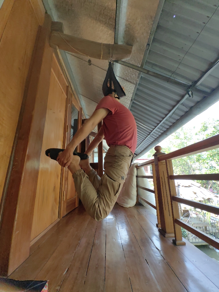- "An individual is depicted in Mù Cang Chải, Vietnam, performing an inversion exercise on a raised wooden balcony" by FM-gnqSa2, licensed under CC BY 4.0