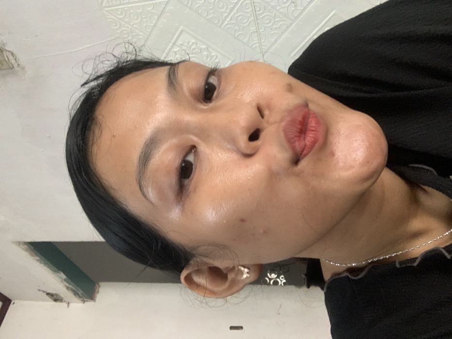 A tan-skinned woman with dark hair and brown eyes poses close to the camera