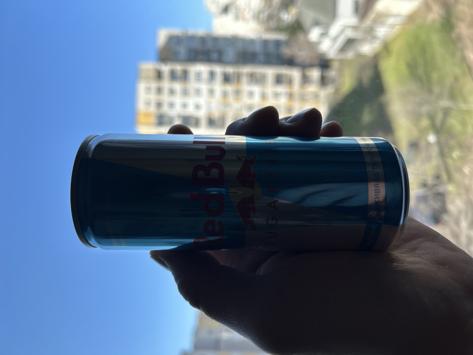 - "A human hand, silhouetted against a bright sky, is observed holding a Red Bull Sugar Free energy drink can" by FM-lzWJB3, licensed under CC BY 4.0