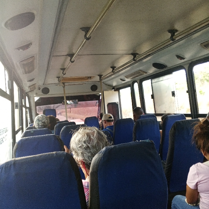 - "Inside a bus, several passengers sit on blue seats facing forward" by FM-Ov7T13, licensed under CC BY 4.0