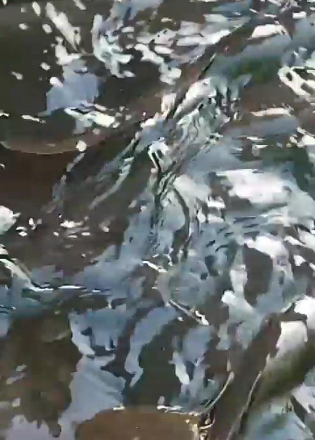 water in a pond with several fish swimming