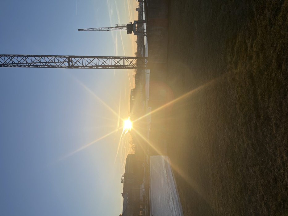 - "The image depicts a harbor scene in Liepaja, Latvia, during the golden hour, likely sunset or sunrise, with the sun low on the horizon and positioned centrally on the left, casting a strong starburst and lens flare across the frame" by FM-ctogf2, licensed under CC BY 4.0