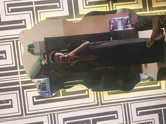 The image depicts an indoor scene in an undisclosed specific location within Lokoja, Nigeria, captured as a mirror selfie