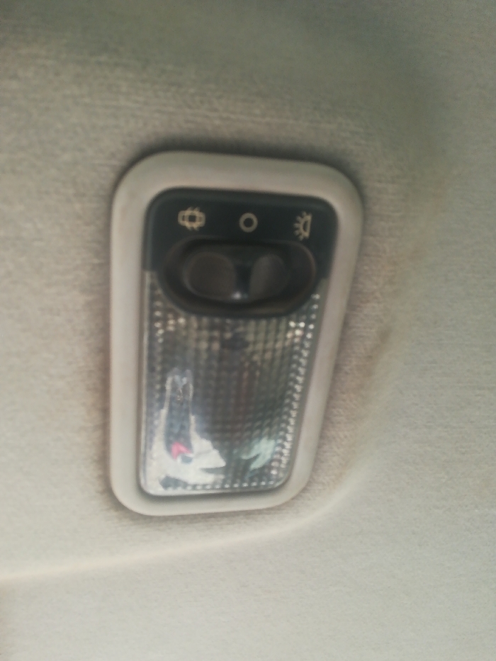 - "This image depicts an overhead interior dome light assembly mounted on a light-colored, likely beige or gray, fabric headliner within a vehicle" by FM-FCgvq2, licensed under CC BY 4.0