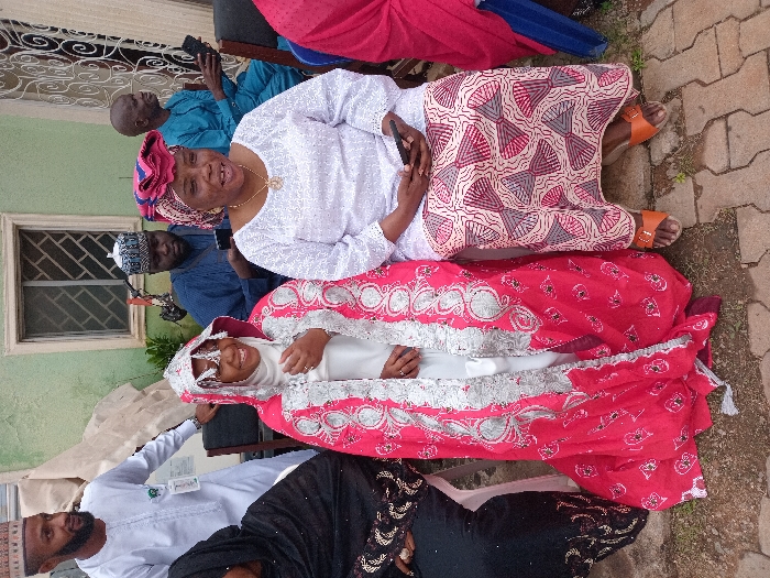 The image depicts a social gathering outdoors in Unguwar Sarki, Nigeria