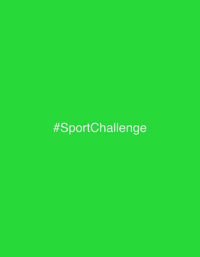 The image displays a solid lime green background. Centered horizontally and vertically within the frame is the white text "#SportChallenge". There are no discernible people, subjects, objects beyond the text, actions, interactions, or environmental features depicted. The image does not provide any visual information to determine a specific location in the city of Sofia, Bulgaria, or any other physical setting.
