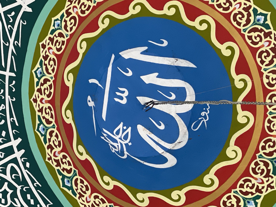 - "A detailed, close-up view depicts a vibrant Islamic calligraphic and decorative artwork, likely situated on the interior dome or ceiling of a mosque in Kumbang, Indonesia" by FM-56aBo1, licensed under CC BY 4.0