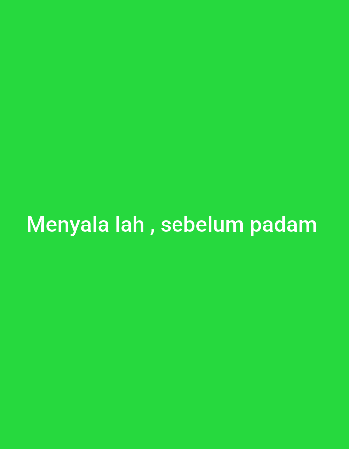 - "A solid green background features the white text, "Menyala lah, sebelum padam"" by FM-f8CKP2, licensed under CC BY 4.0