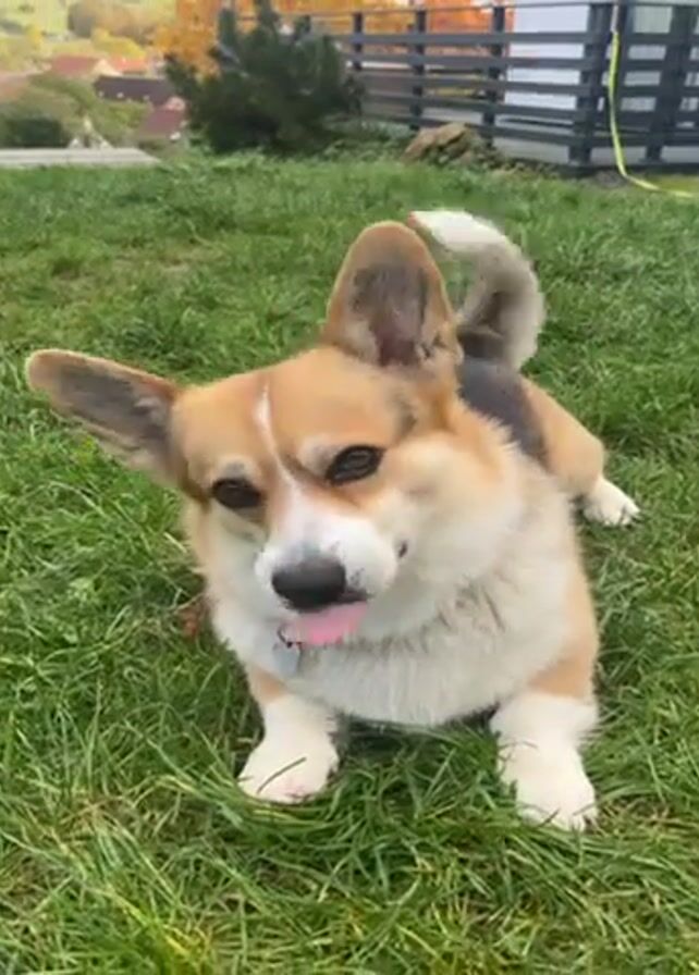 - "A corgi is lying on green grass and looking into the camera" by FM-4GKkh1, licensed under CC BY 4.0