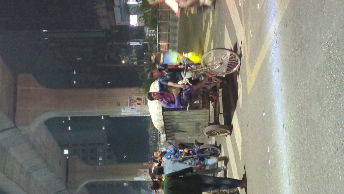- "This image depicts a nighttime urban street scene in Dhaka, Bangladesh, underneath a large, elevated concrete structure, likely a metro rail line or flyover, supported by multiple concrete pillars" by FM-9iqtw2, licensed under CC BY 4.0