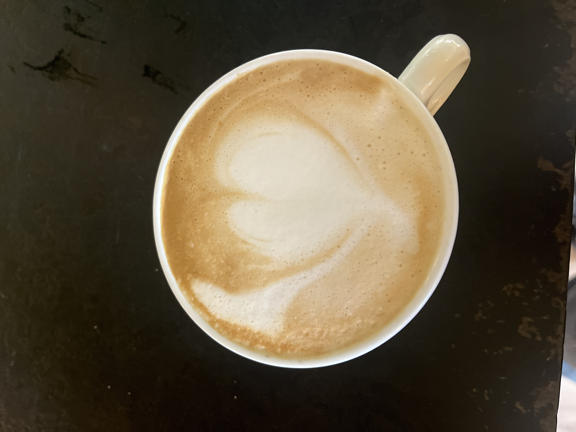 - "A white ceramic mug containing a light brown beverage with a foamy surface is centrally positioned on a dark, textured surface" by FM-Z13qd2, licensed under CC BY 4.0