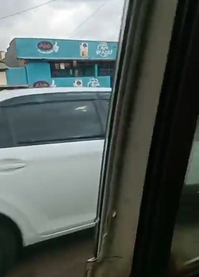 The video, shot from inside a moving vehicle, shows a roadside scene